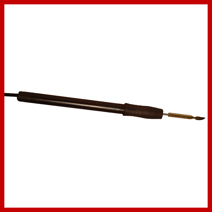 Nożyk do wosku typ K1 Dzięki utrzymywaniu stałej temperatury na grocie przy każdym nakładaniu porcji wosku zachowuje on taką samą płynność. Przystosowany do ciągłej pracy, 24h. Rękojeść zakończona ergonomiczną miękką nakładką dla jeszcze pewniejszego chwytu. Możliwość dowolnego ukształtowania / wymodelowania końcówki. W komplecie trzy wymienne końcówki: